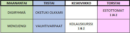 Huom! Ei kerhoa yleisinä koulujen loma-aikoina